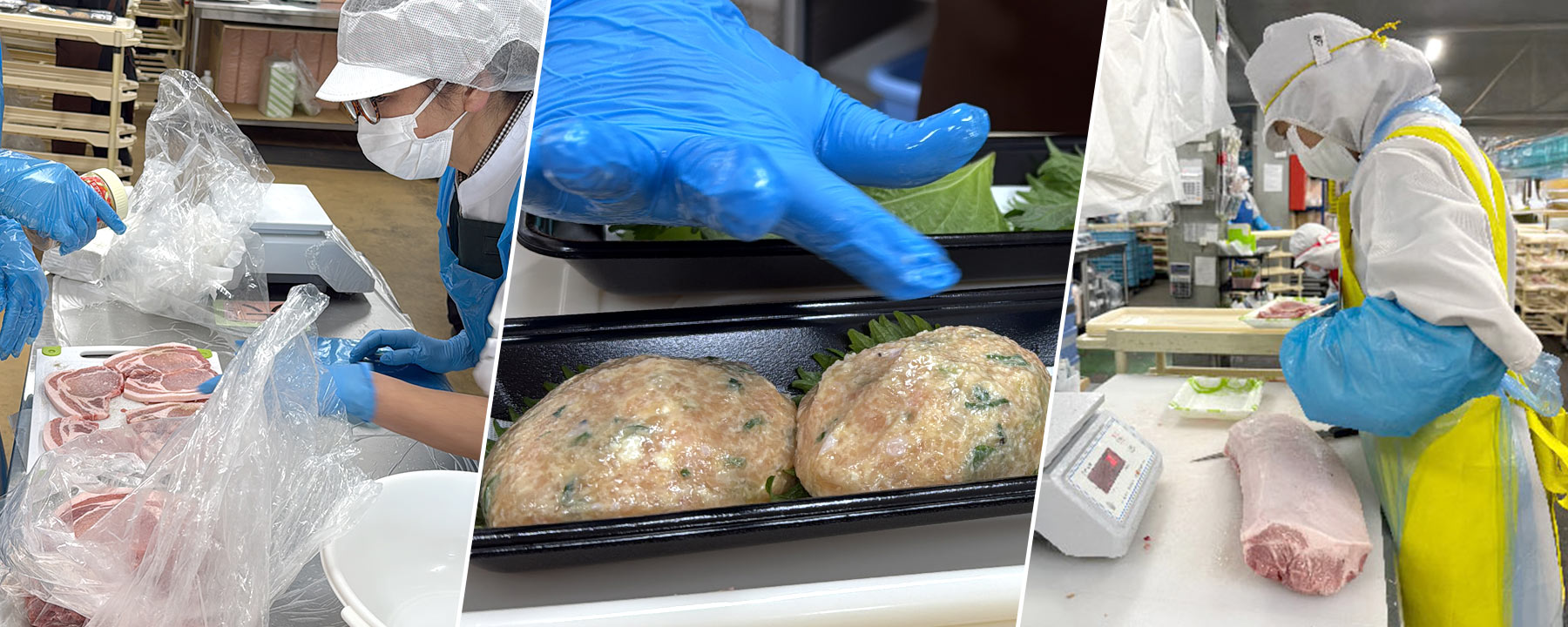 佐賀県産和牛を中心に、担当者が肉質を直接確認して厳選。豚肉も安定した品質を維持できるよう管理しています。