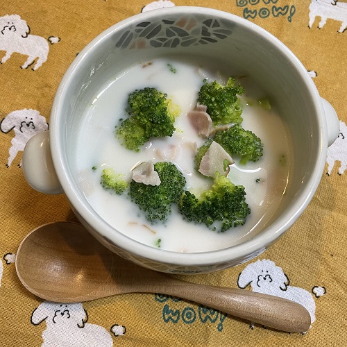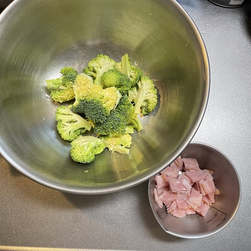 ブロッコリーとベーコンを食べやすい大きさに切ります。