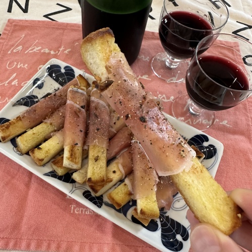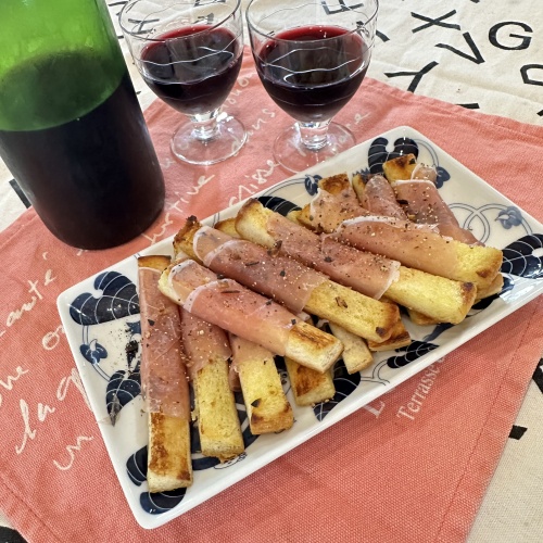 生ハムを巻いてブラックペッパーをかけたら出来上がり♪