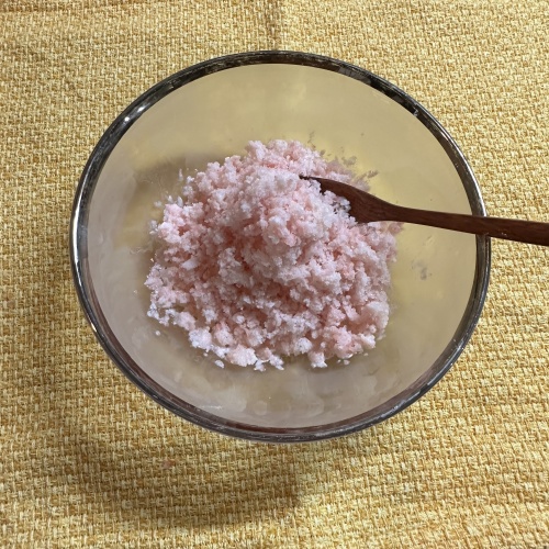 スイカの種を取り除き一口大に切り、材料全てを入れて果肉を潰す感じで混ぜます。