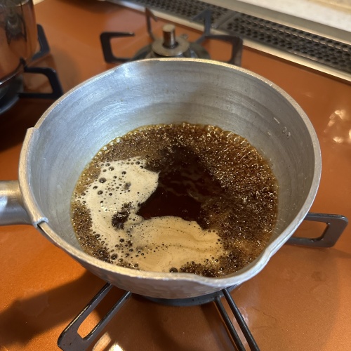 ②に①を入れて、水分がなくなるまで煮詰めます。