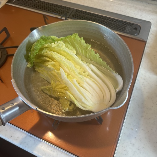 鍋にお湯(分量外)を沸かし、白菜を3分ほど茹でます。
