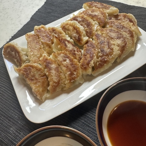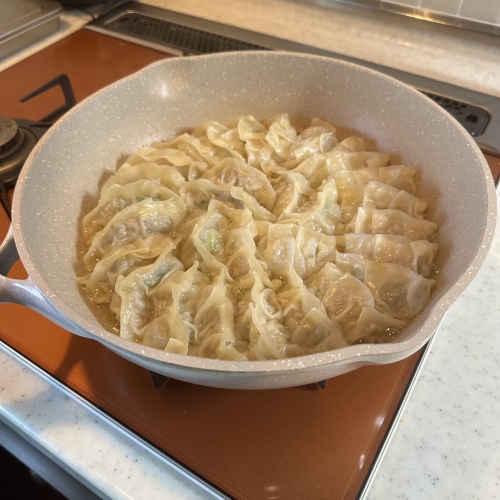 フライパンにごま油を入れ、⑤を並べてから火をつけ中火で焼き目が付くまで焼きます。