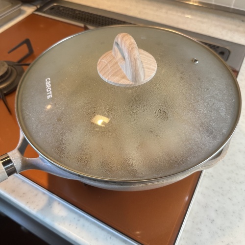 5分蒸し焼きにしたら蓋を外して中火に戻し、水分がなくなるまで焼きます。